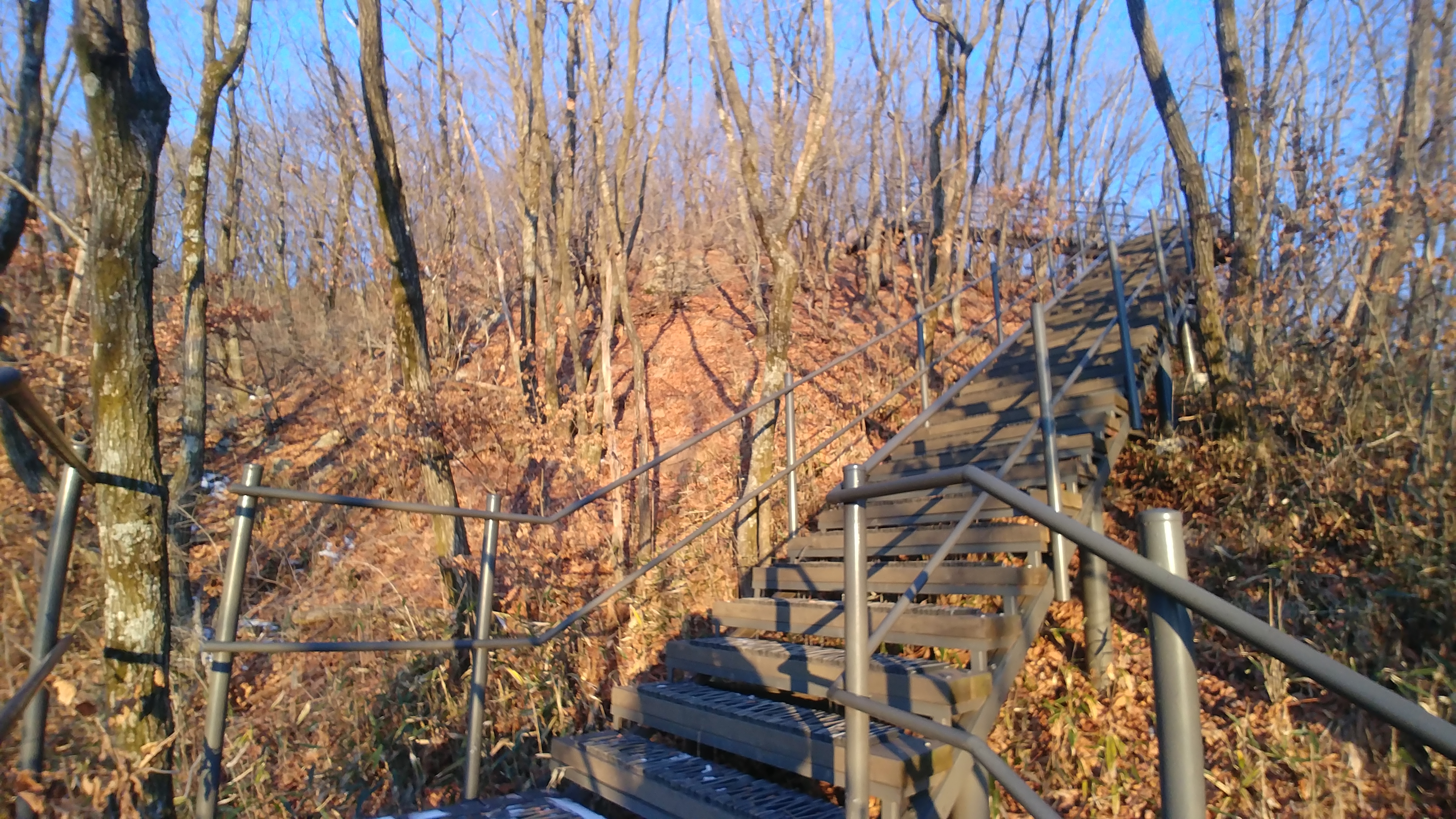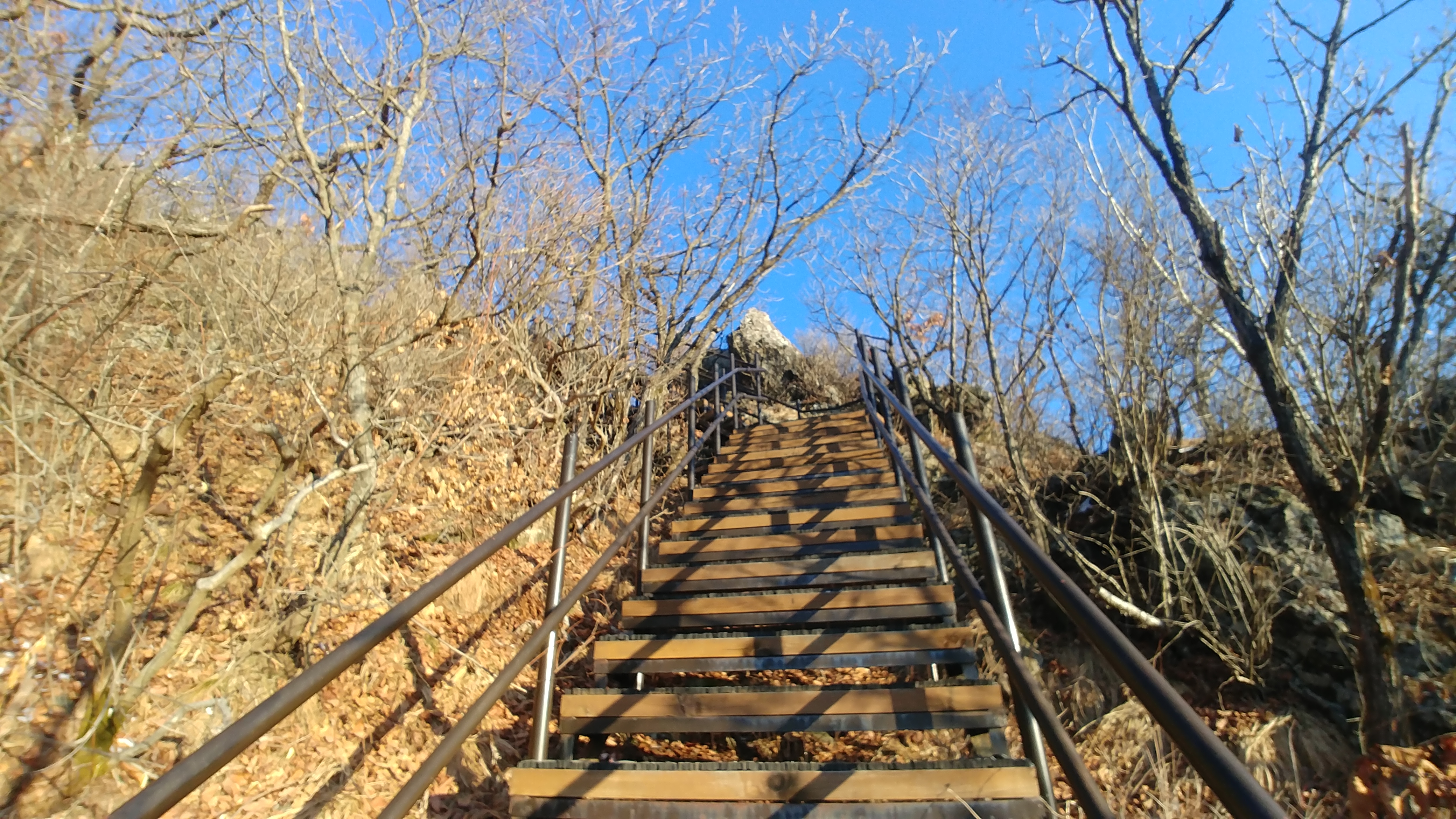 정상 오름길 계단에서